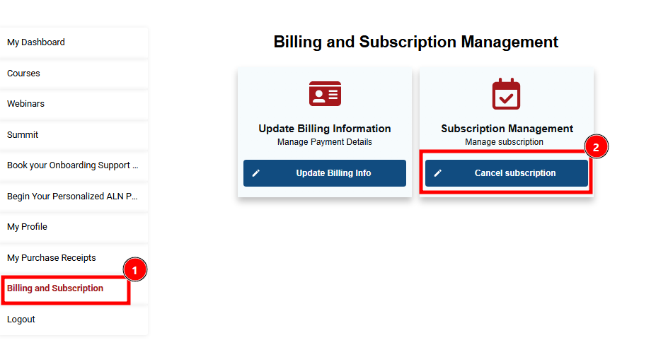 From here select 'Billing and Subscription', followed by 'Cancel Subscription'.